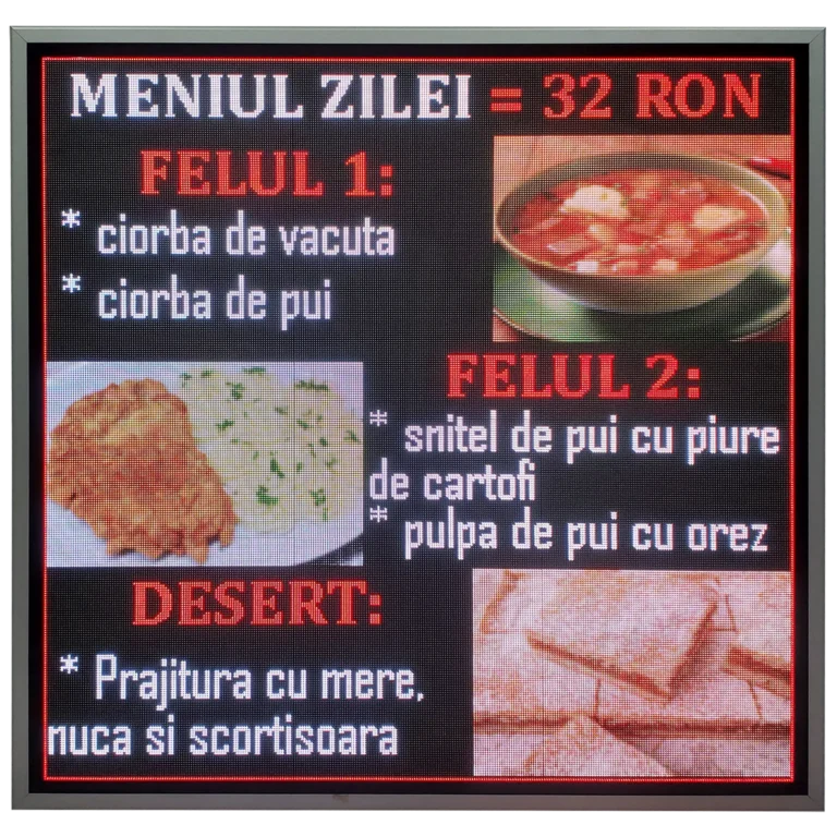 Panourile full color permit afișarea de imagini, animații și conținut complex, în timp ce afișajele cu o singură culoare sunt ideale pentru mesaje clare, lizibile de la distanță, precum orar, prețuri sau anunțuri.
