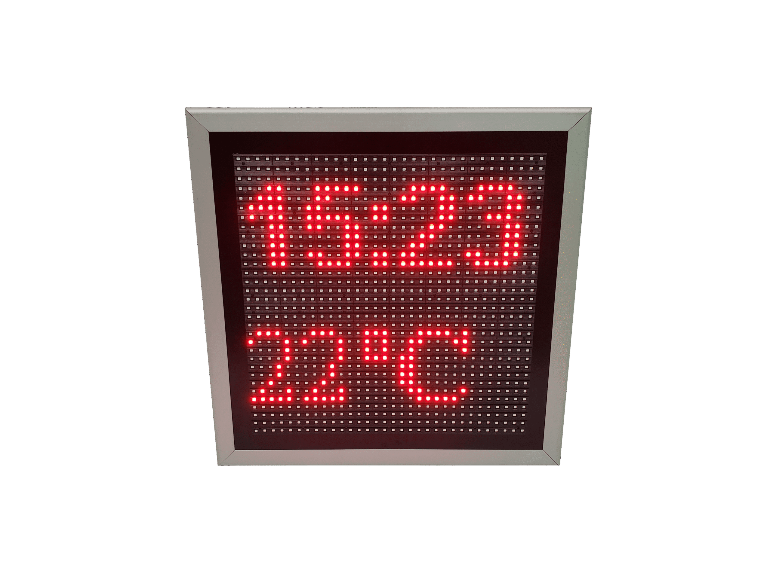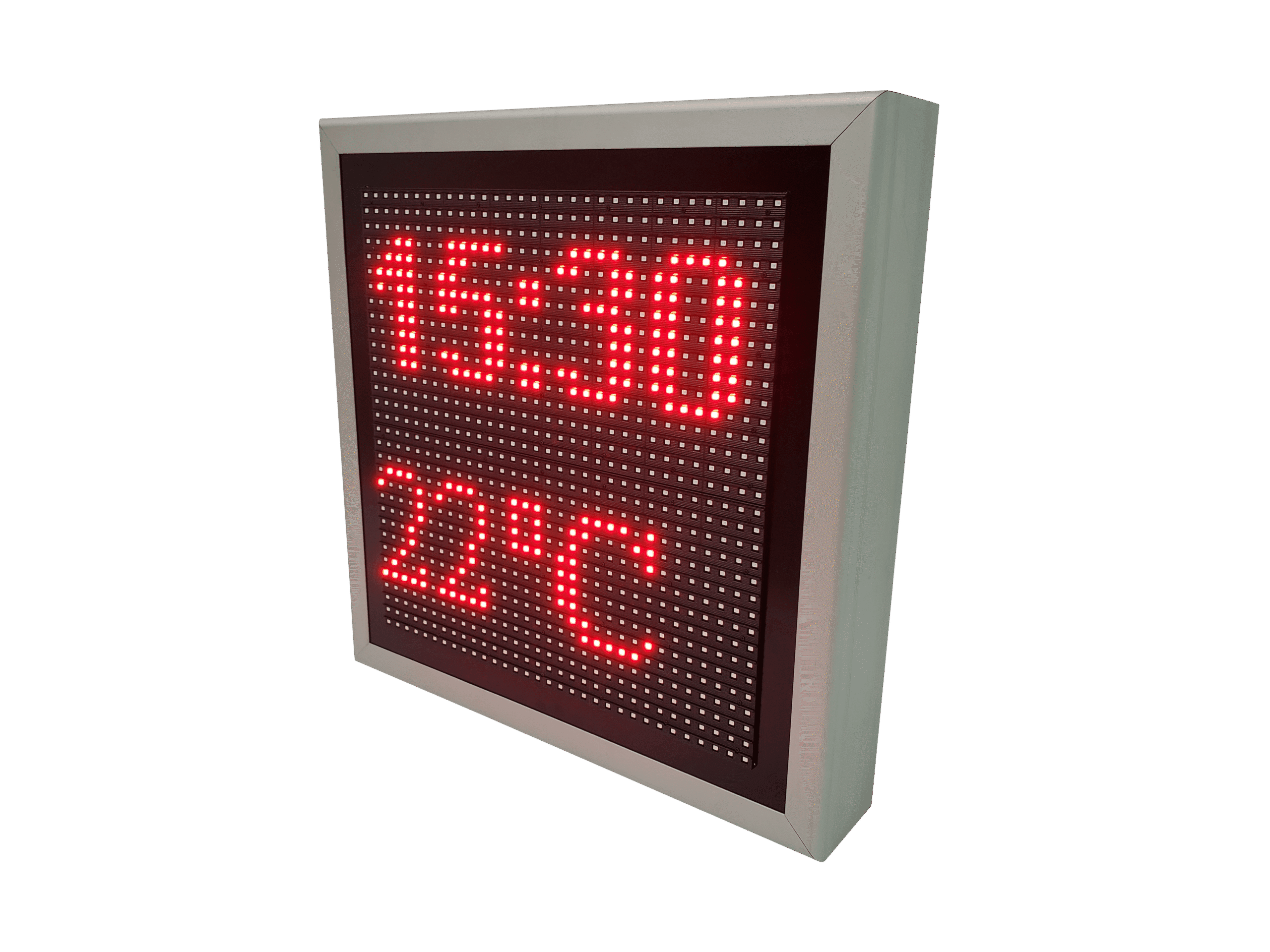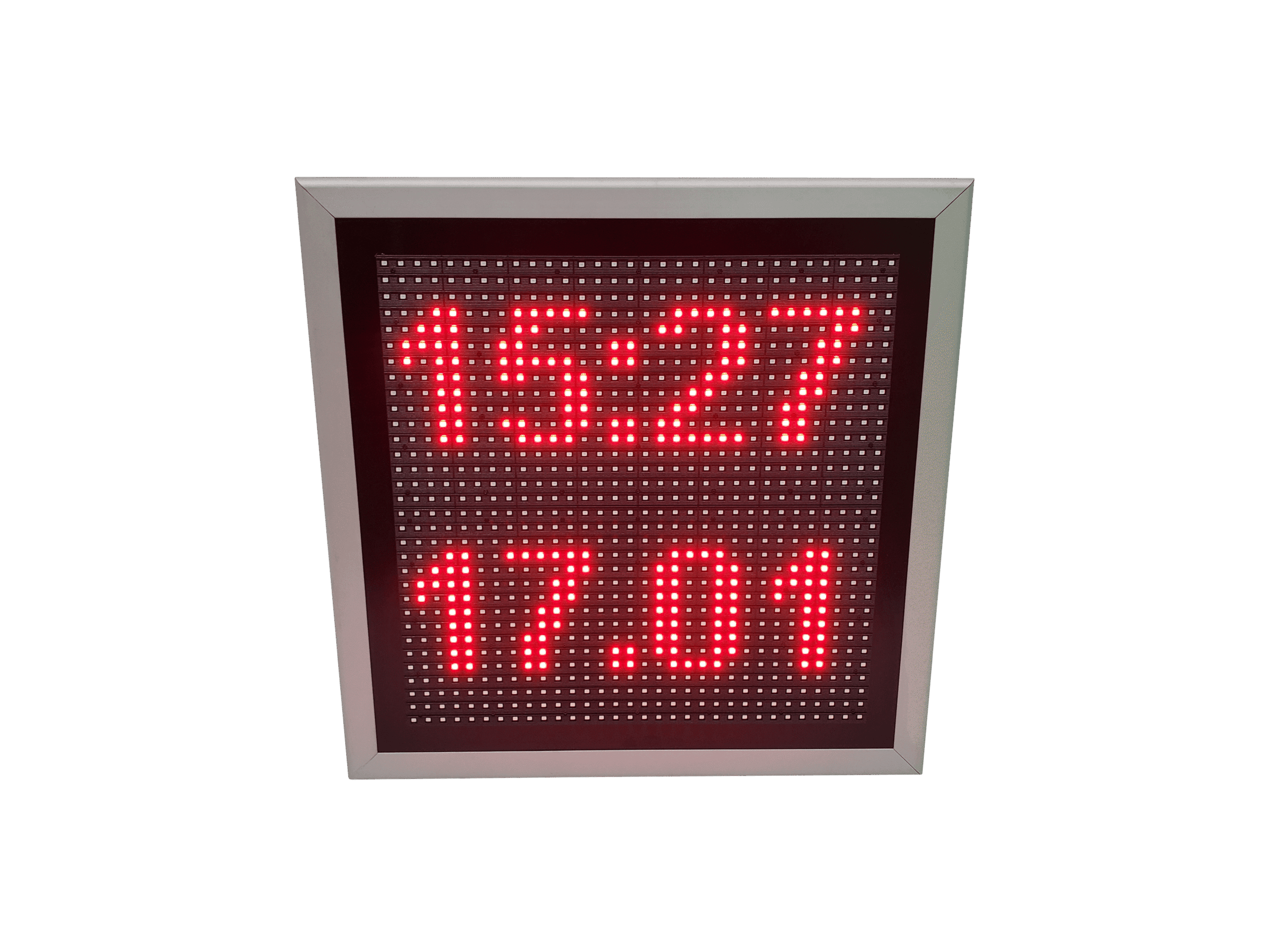 Formatul patrat il face ideal pentru vitrine, receptii, sedii de firme sau spatii comerciale unde vrei un punct vizual bine definit. Afisajul cu LED-uri rosii este puternic si usor de citit chiar si de la distanta, iar carcasa solida permite montajul atat la interior, cat si la exterior.
