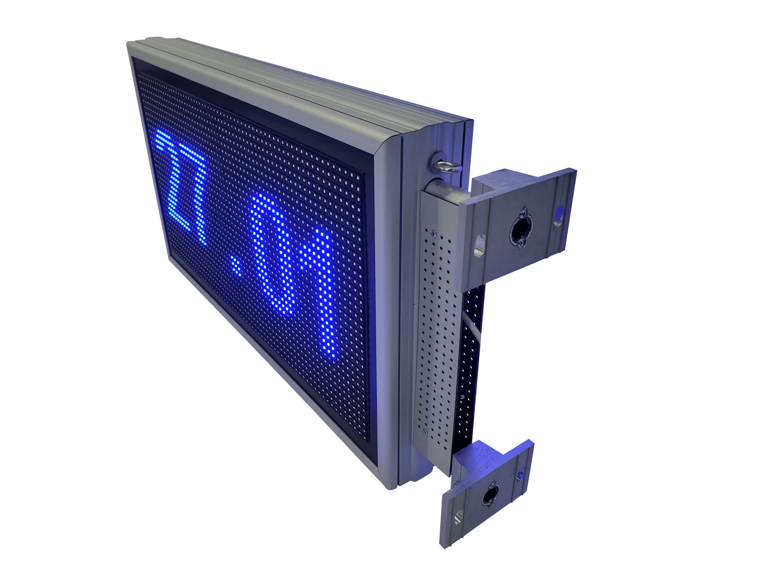 Ceas electronic cu afisaj LED albastru, clar si usor de citit de la distanta, proiectat pentru montaj exterior. Afisaj pe ambele parti, ideal pentru zone cu trafic din doua sensuri sau spatii deschise.