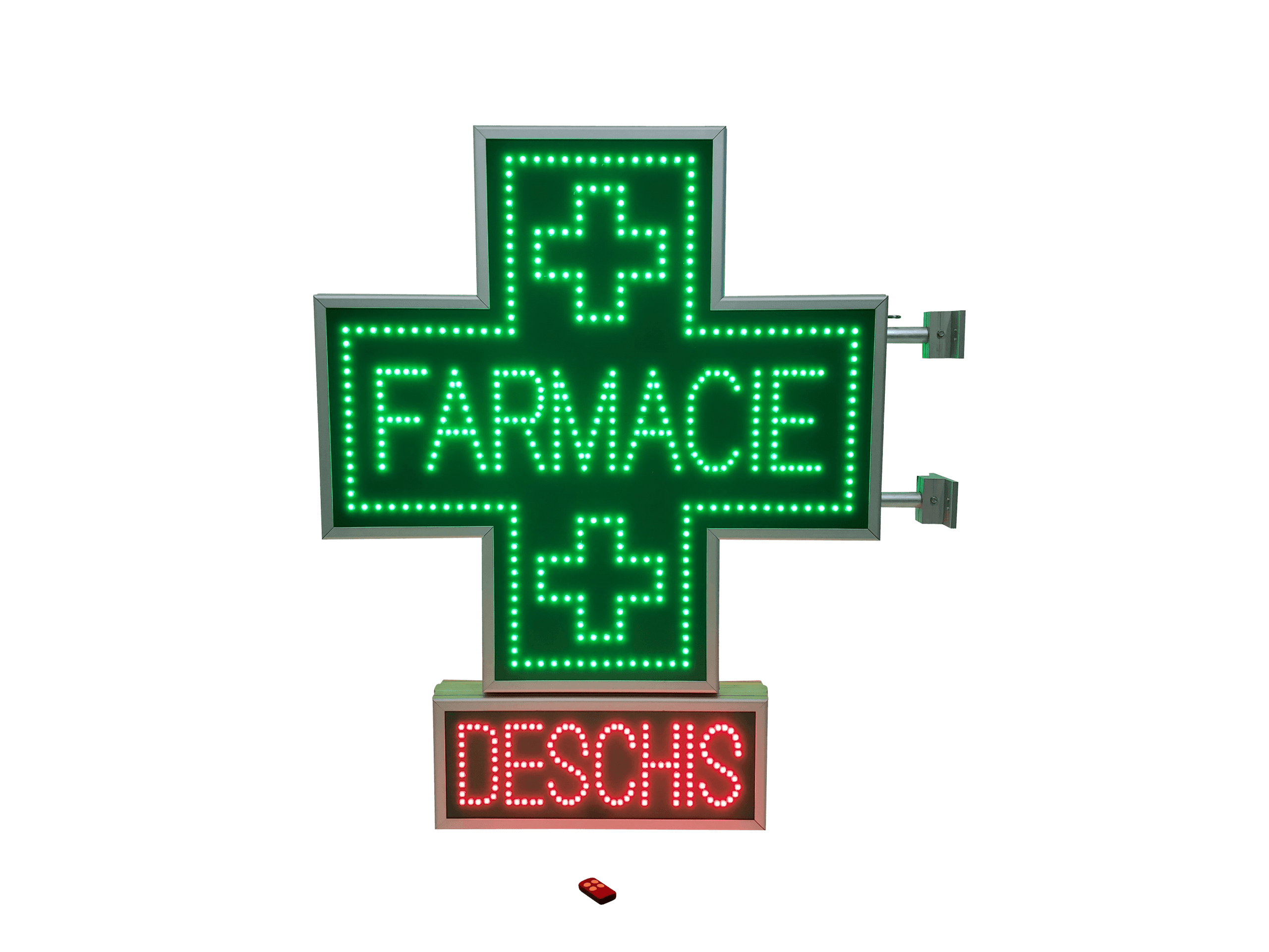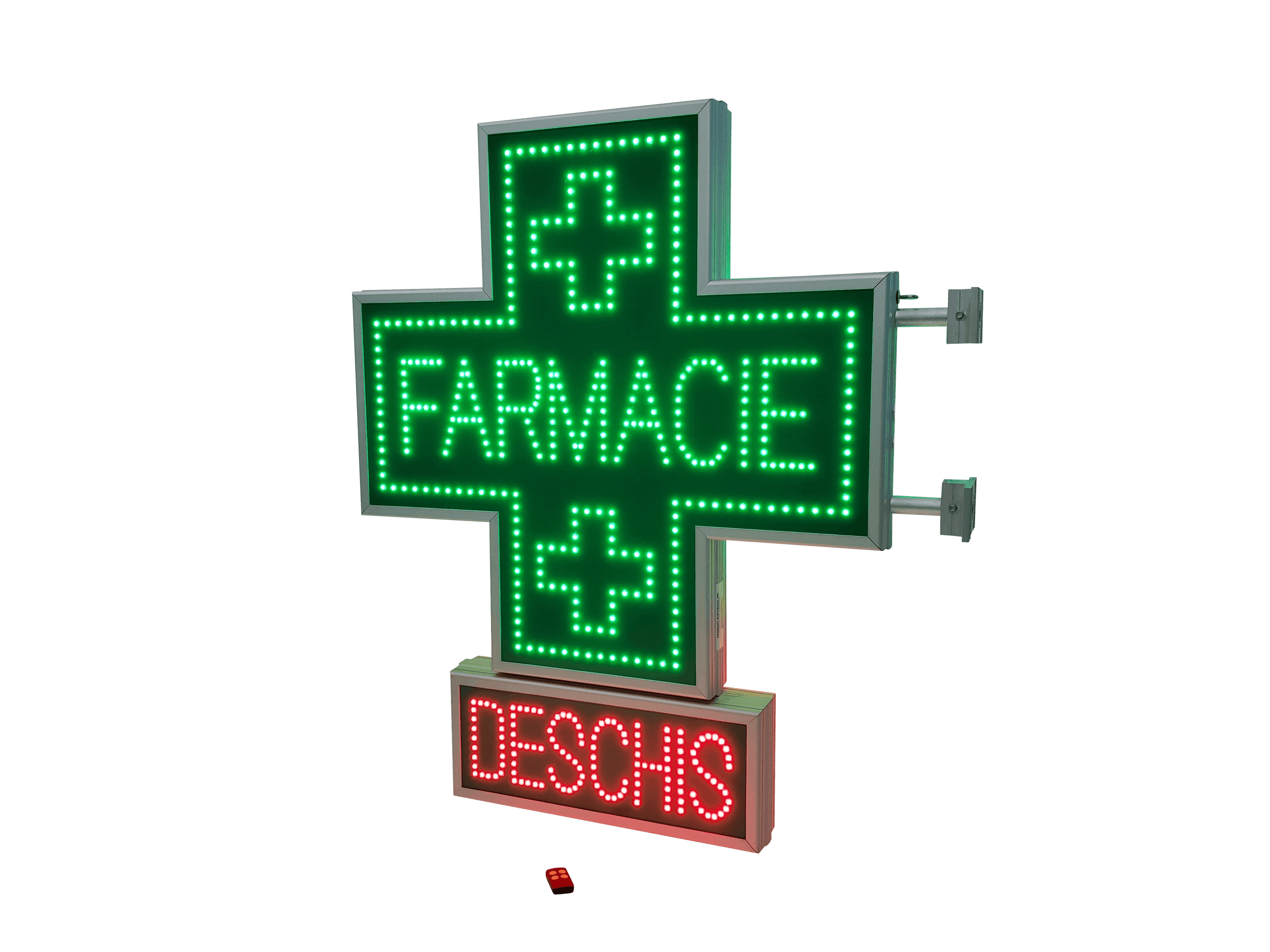 Este o solutie potrivita pentru locatii care vor sa combine vizibilitatea clasica a crucii farmaceutice cu un plus de utilitate practica.