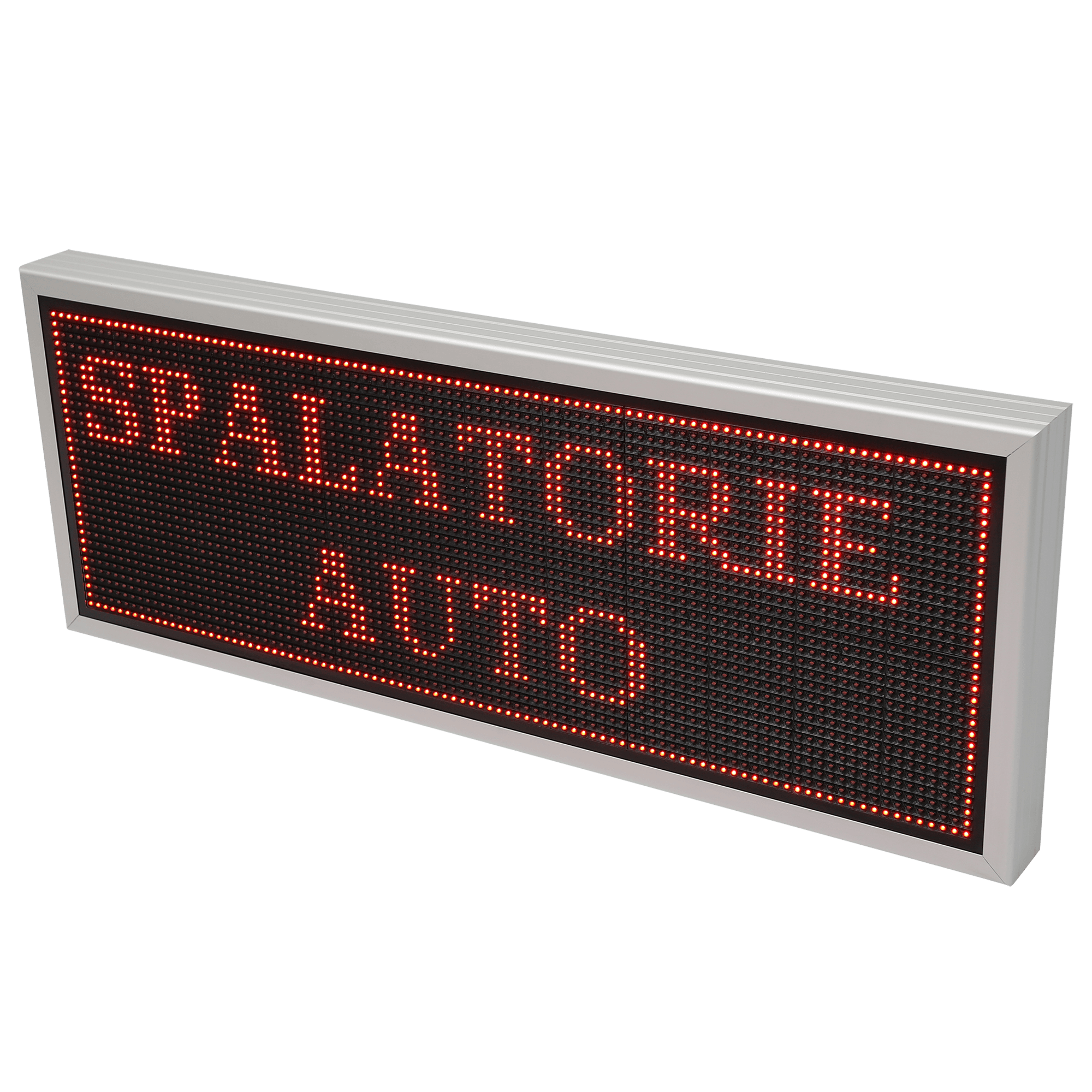 Panoul LED monocolor, cu afisare pe o singura fata, este o solutie practica si eficienta pentru spalatoriile auto care doresc sa fie vizibile si usor de recunoscut de la distanta. Este ideal pentru afisarea mesajelor simple si clare, precum „Spalatorie auto”, program de functionare sau informatii utile pentru clienti.