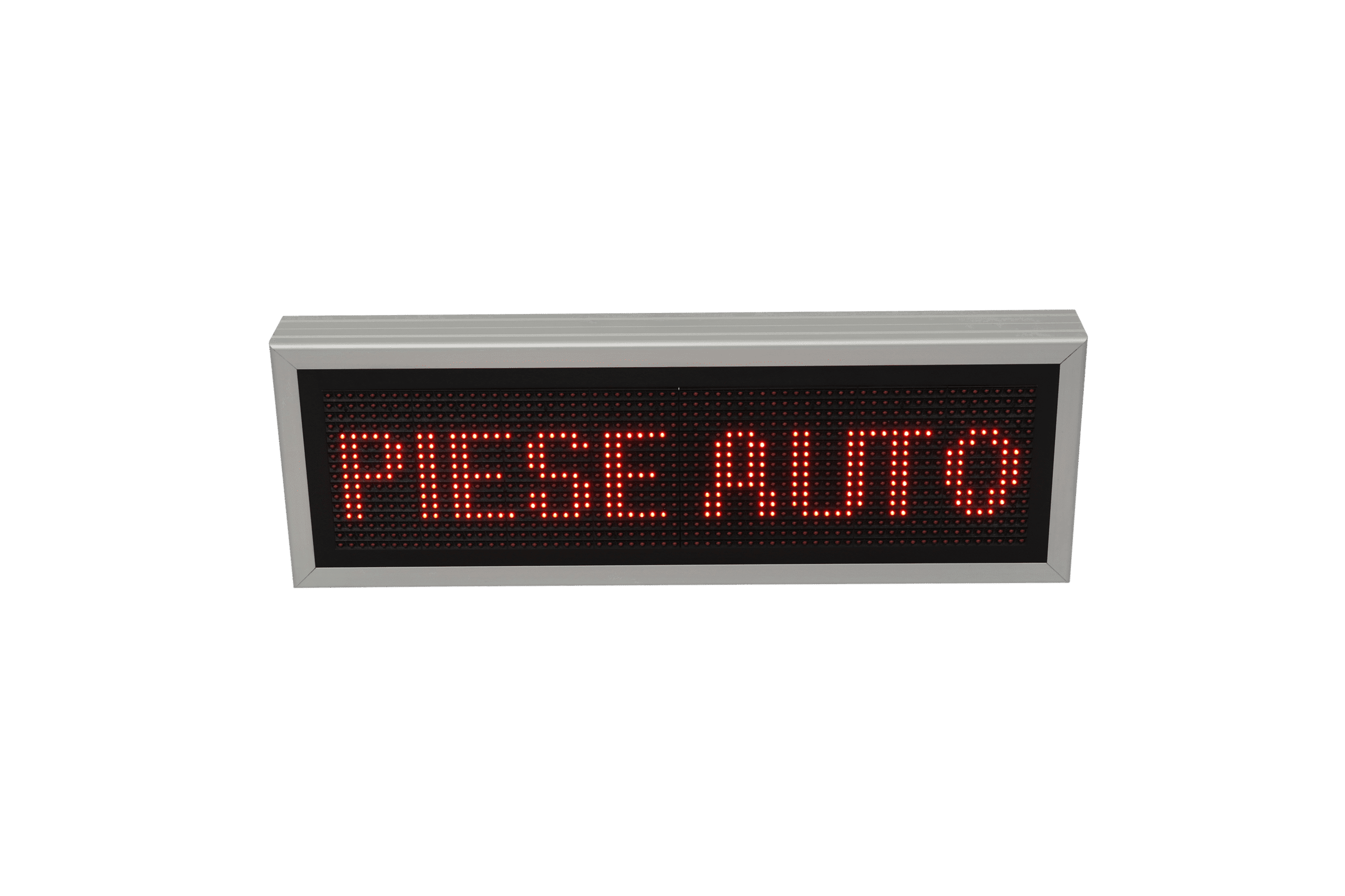 Panoul LED monocolor ofera o modalitate simpla si directa de a afisa informatii utile pentru un magazin de piese auto. Este potrivit pentru mesaje scurte, usor de inteles, care ajuta la recunoasterea rapida a magazinului si la transmiterea informatiilor esentiale. Afisajul este pregatit pentru utilizare imediata, iar actualizarile se pot face rapid din software-ul pentru PC pus la dispozitie.