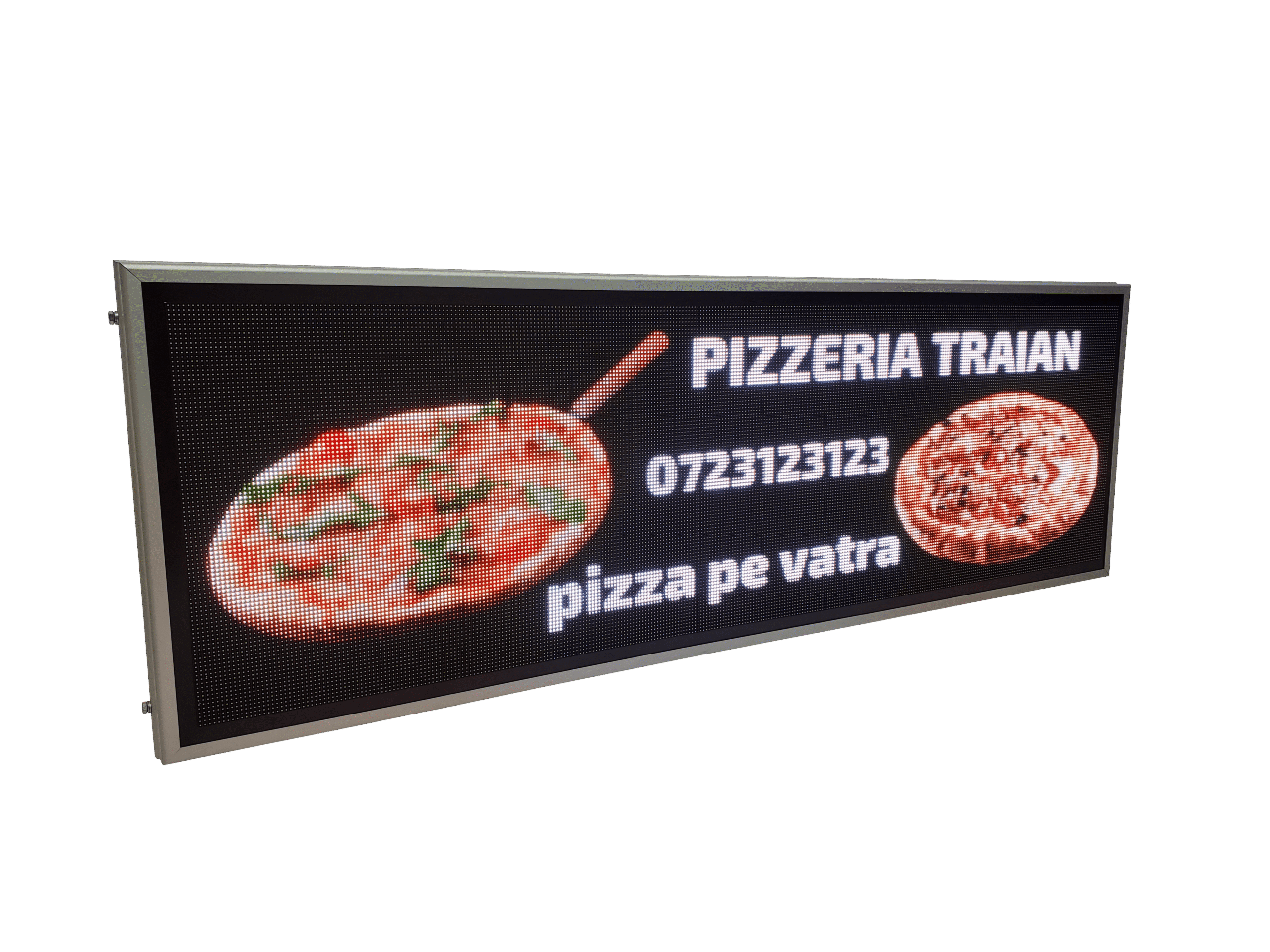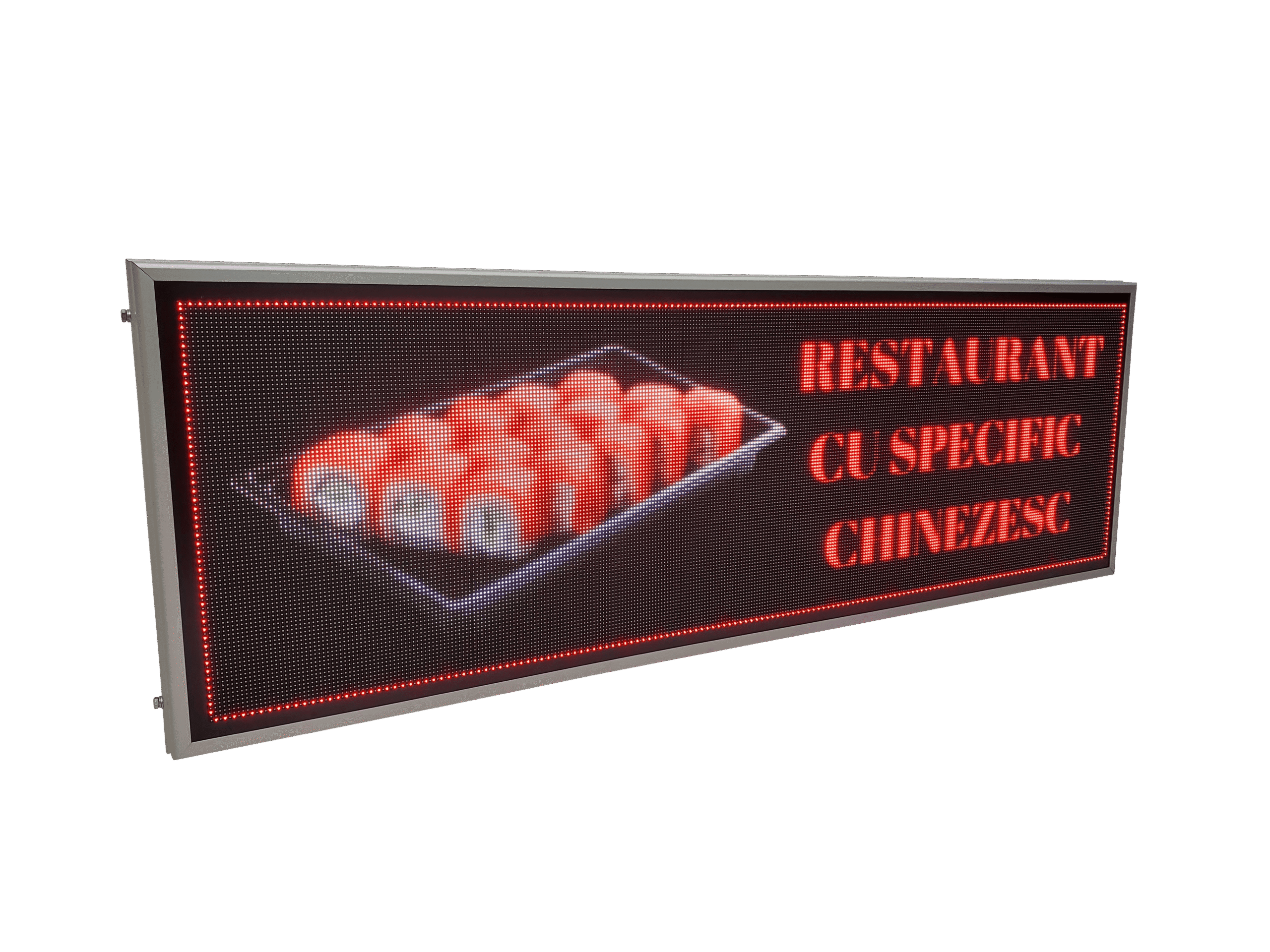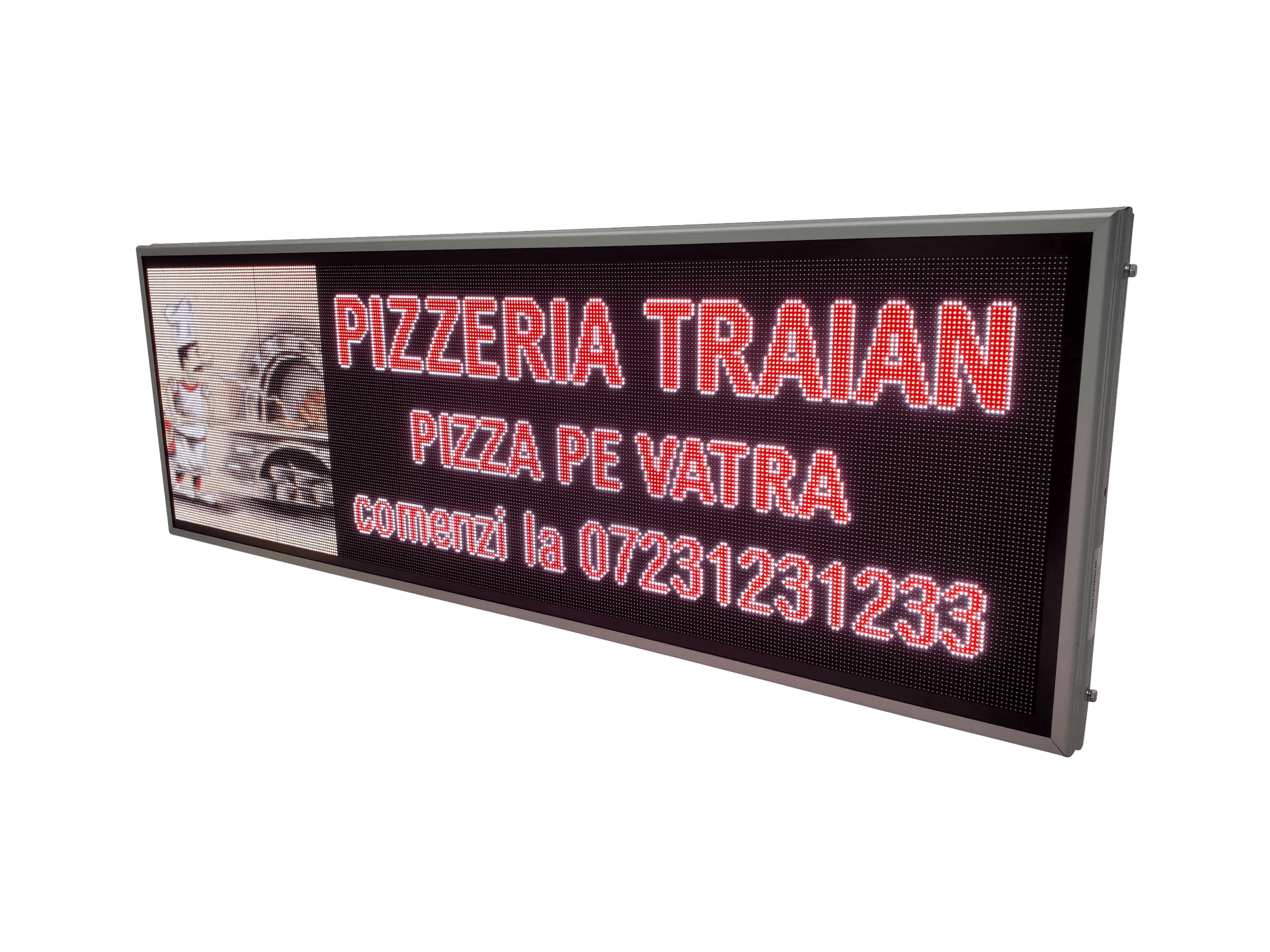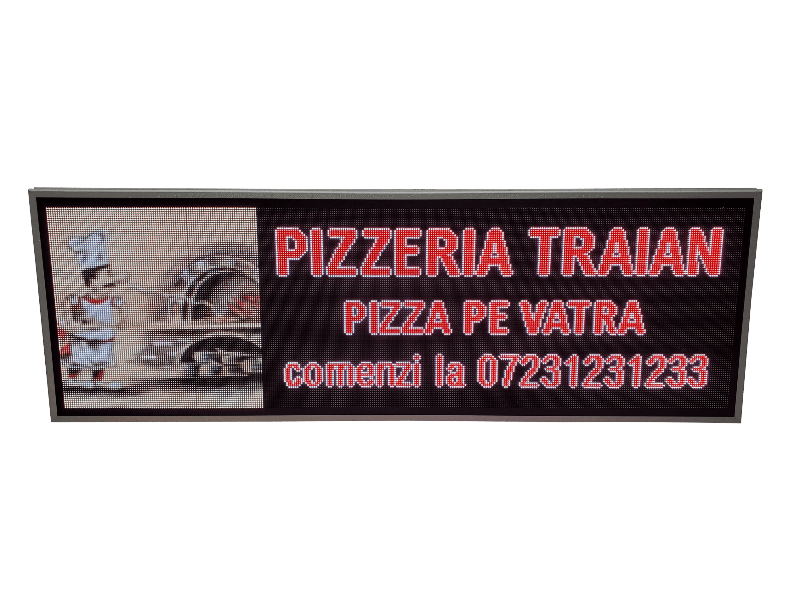 Aceasta reclama LED full color este gandita special pentru locurile unde mancarea trebuie sa atraga privirea din prima: fast food, pizzerii sau restaurante. Imaginile clare si culorile intense scot in evidenta produsele tale si transmit pofta chiar si de la distanta.