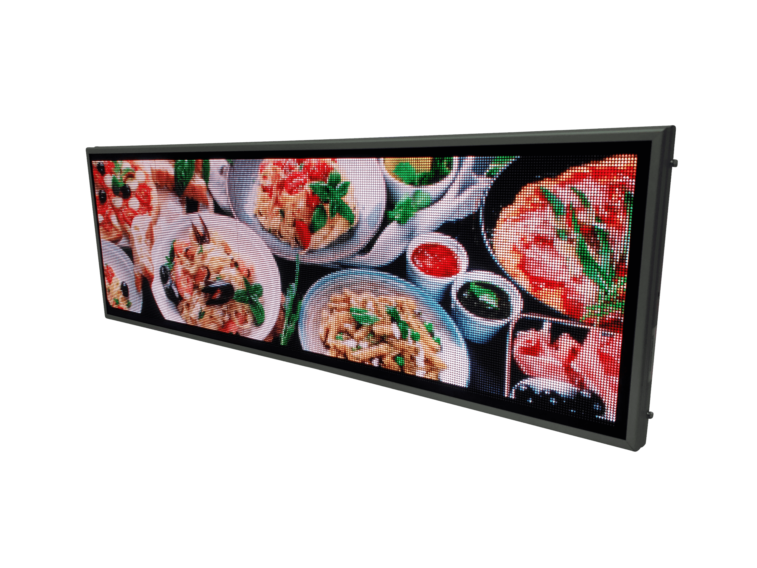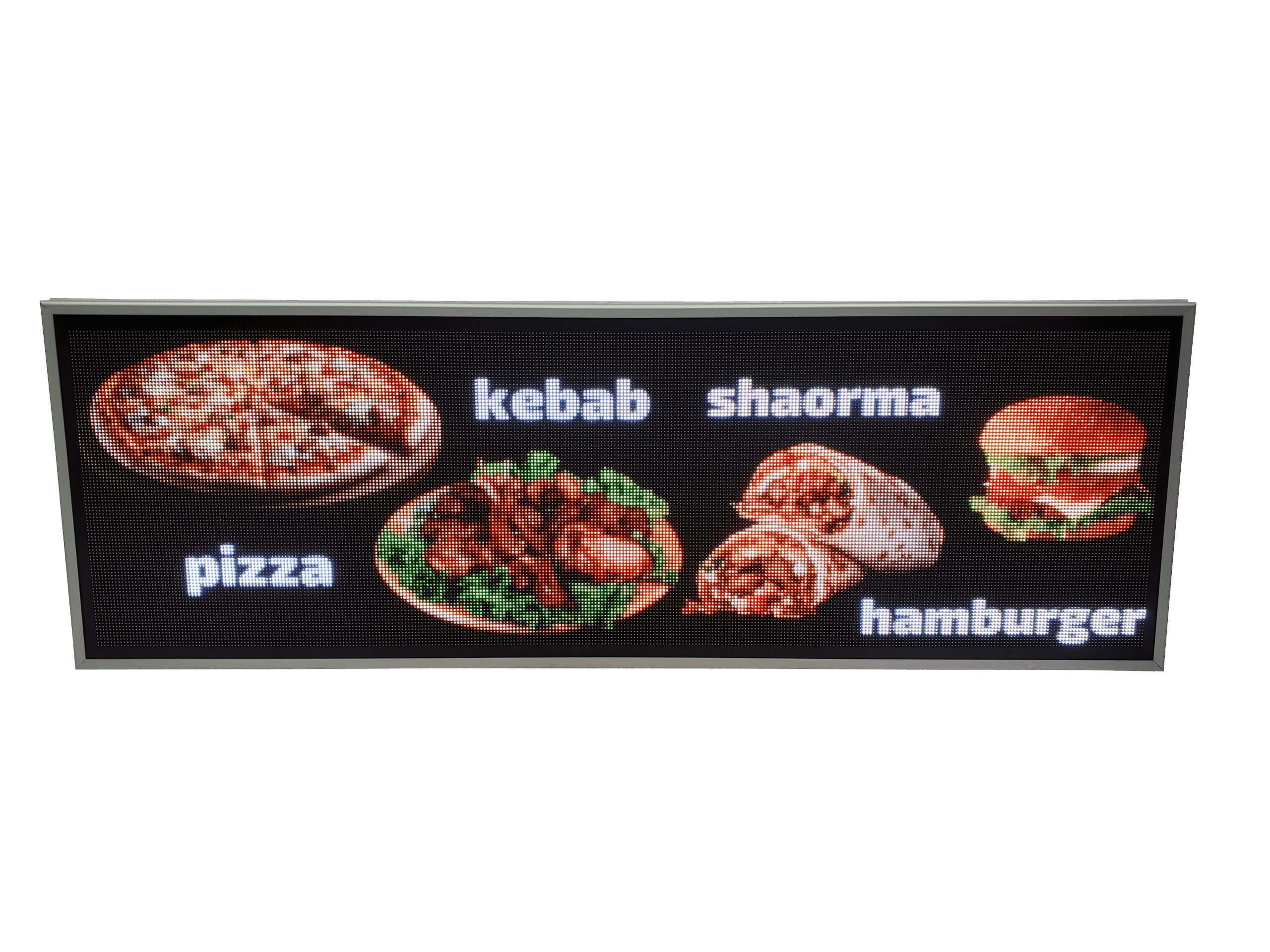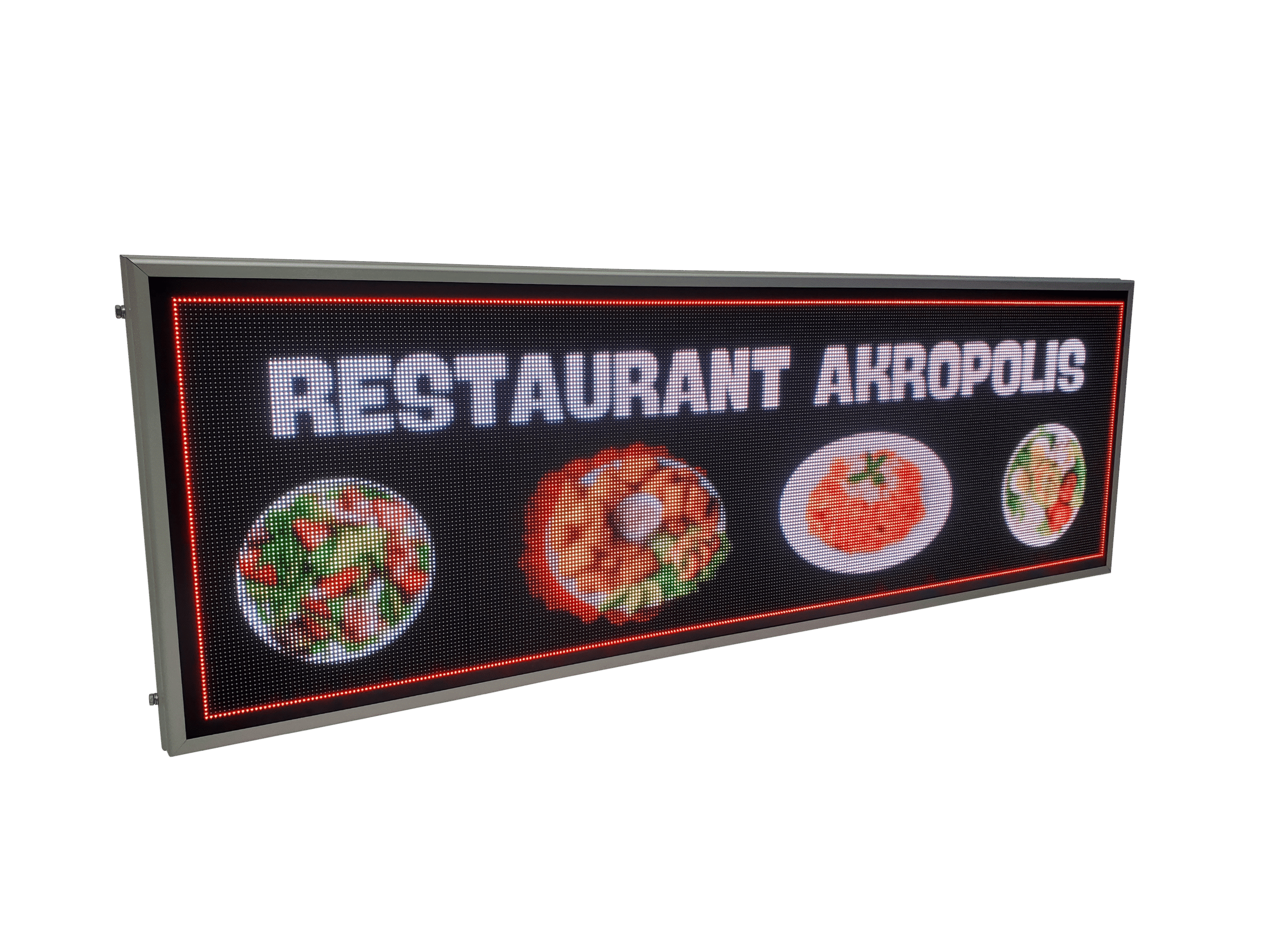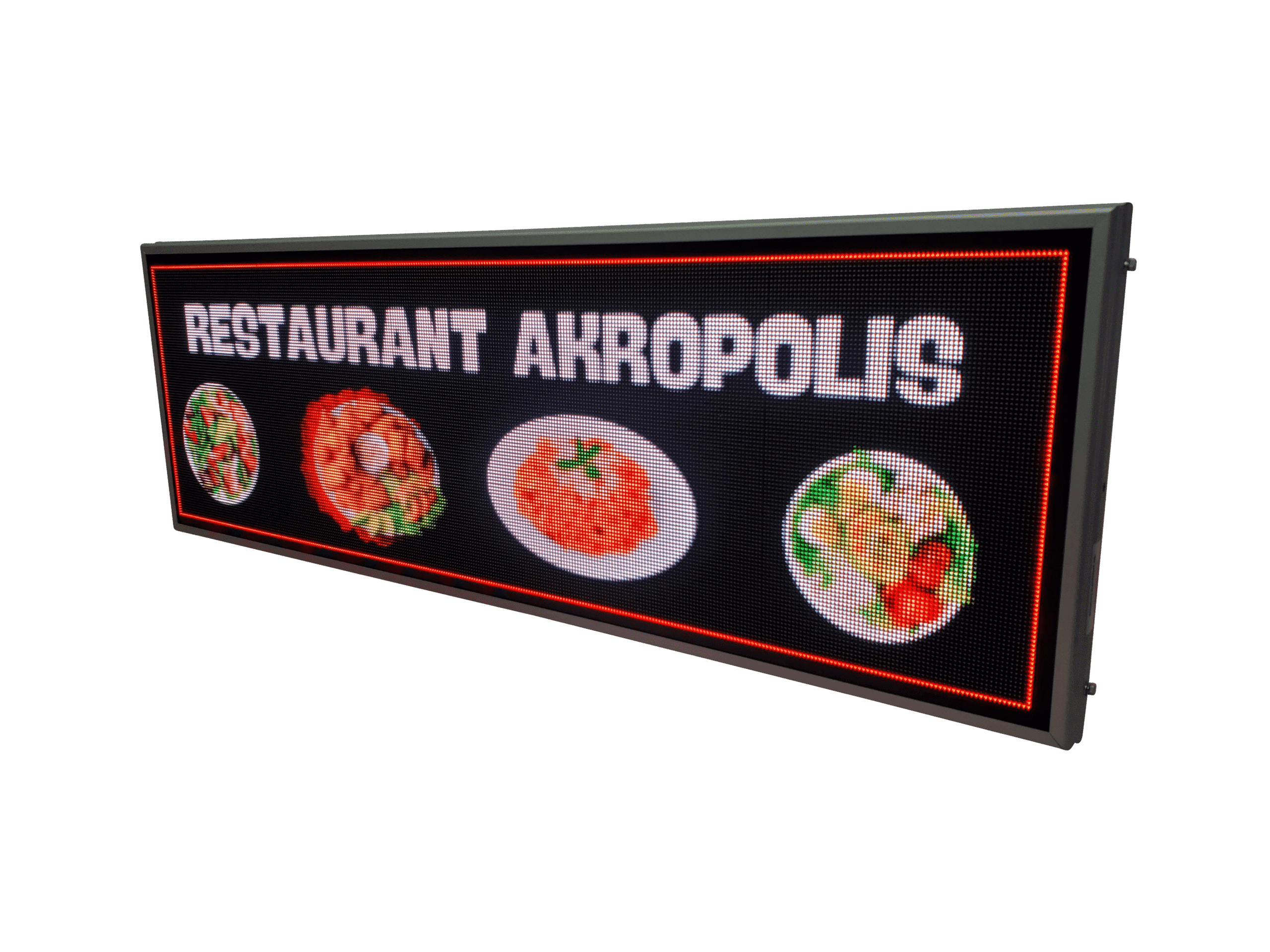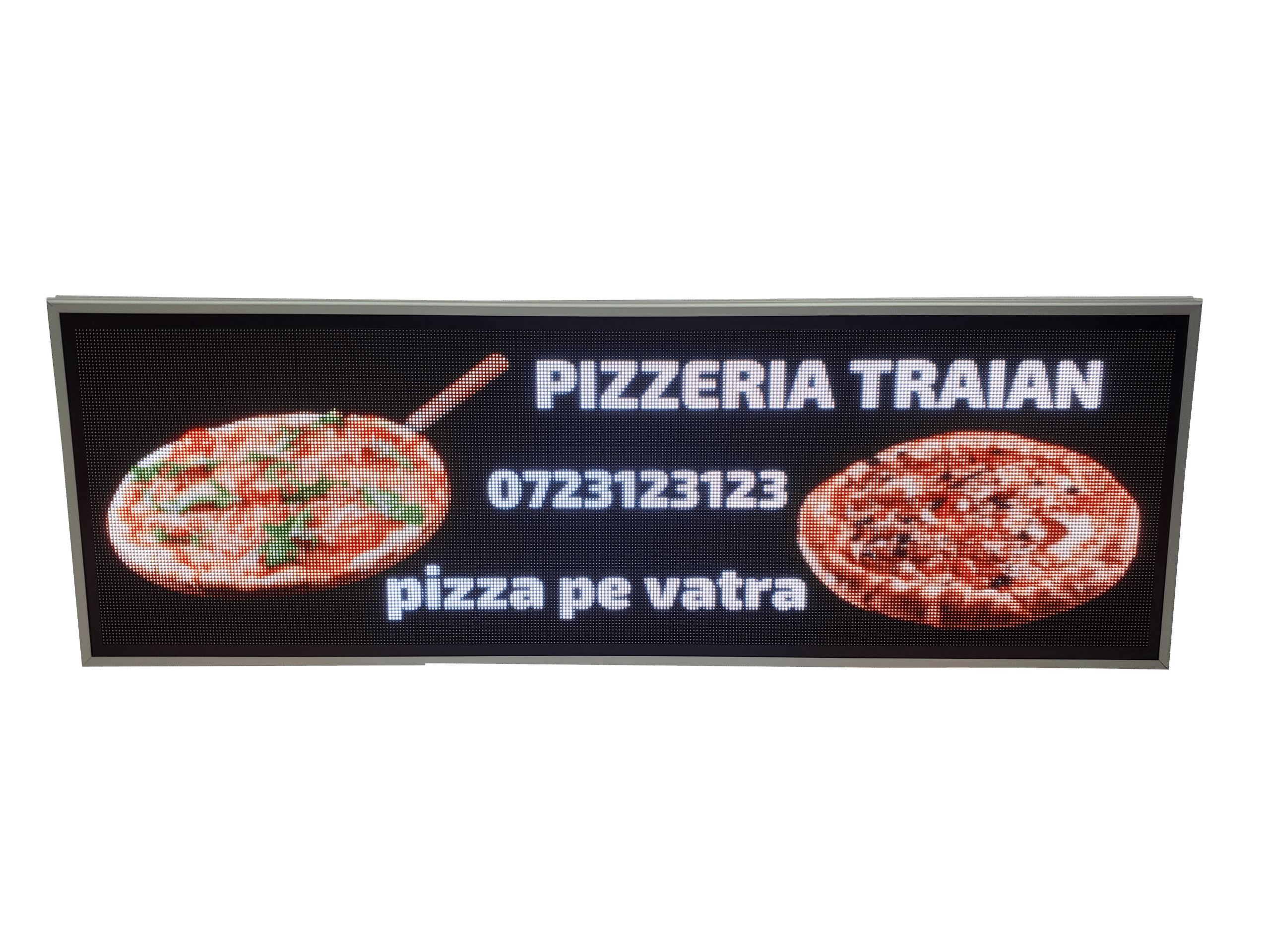 Aceasta reclama LED full color este gandita special pentru locurile unde mancarea trebuie sa atraga privirea din prima: fast food, pizzerii sau restaurante. Imaginile clare si culorile intense scot in evidenta produsele tale si transmit pofta chiar si de la distanta.